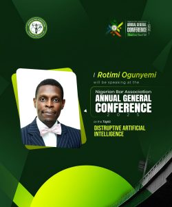 The 2025 Nigerian Bar Association Annual General Conference (NBA-AGC), currently holding in Enugu, will on Monday, August 25, 2025, from 3:00 PM to 4:30 PM, host one of its most anticipated breakout sessions titled “Disruptive Artificial Intelligence: The Future of Nigeria’s Legal Landscape and Judicial Process in the 21st Century.”