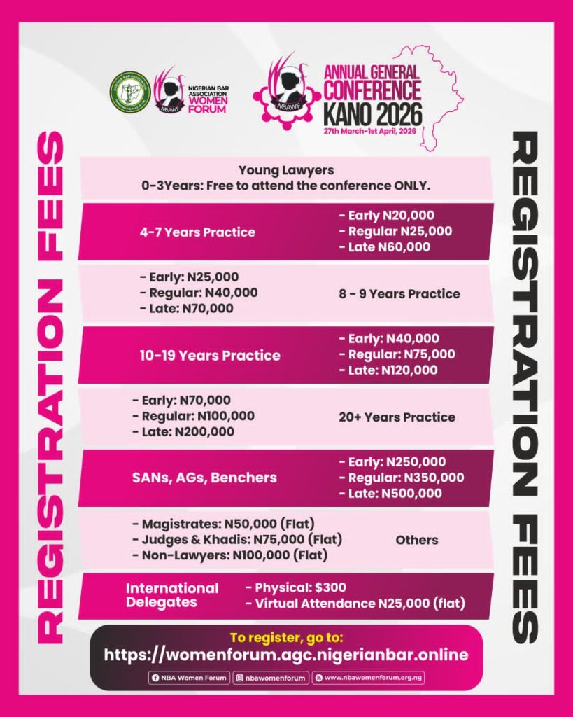 #NBAWomenForum #NBAAGC #WomenInLaw #LegalExcellence #Empowerment #NigerianBarAssociation #Lawyers #Conference2024 #RegisterNow