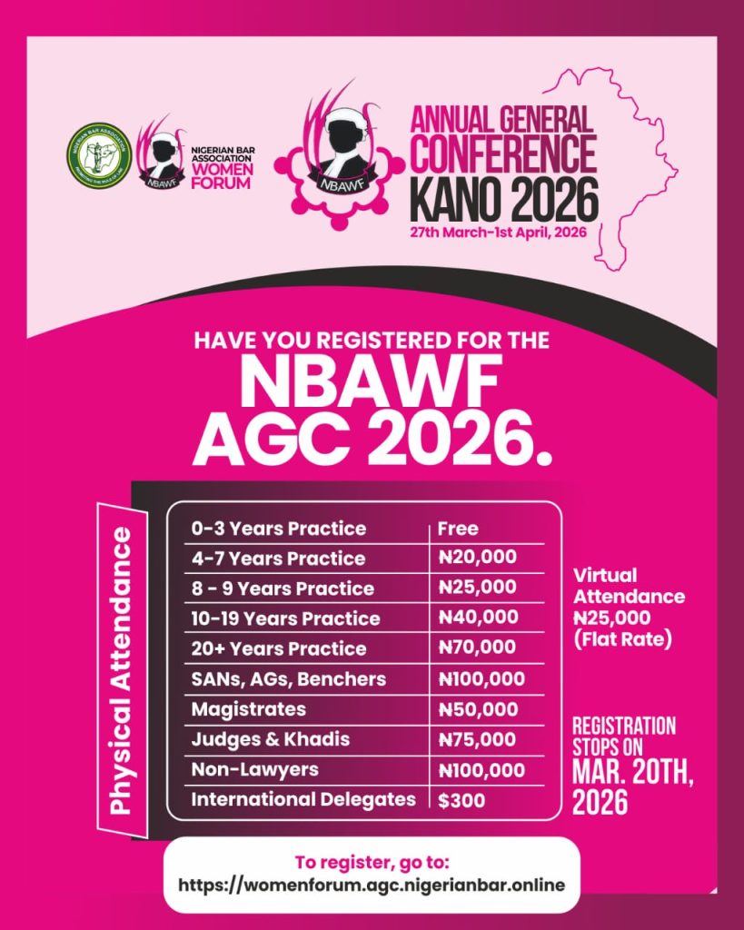 #NBAWomenForum #NBAAGC #WomenInLaw #LegalExcellence #Empowerment #NigerianBarAssociation #Lawyers #Conference2026 #RegisterNow