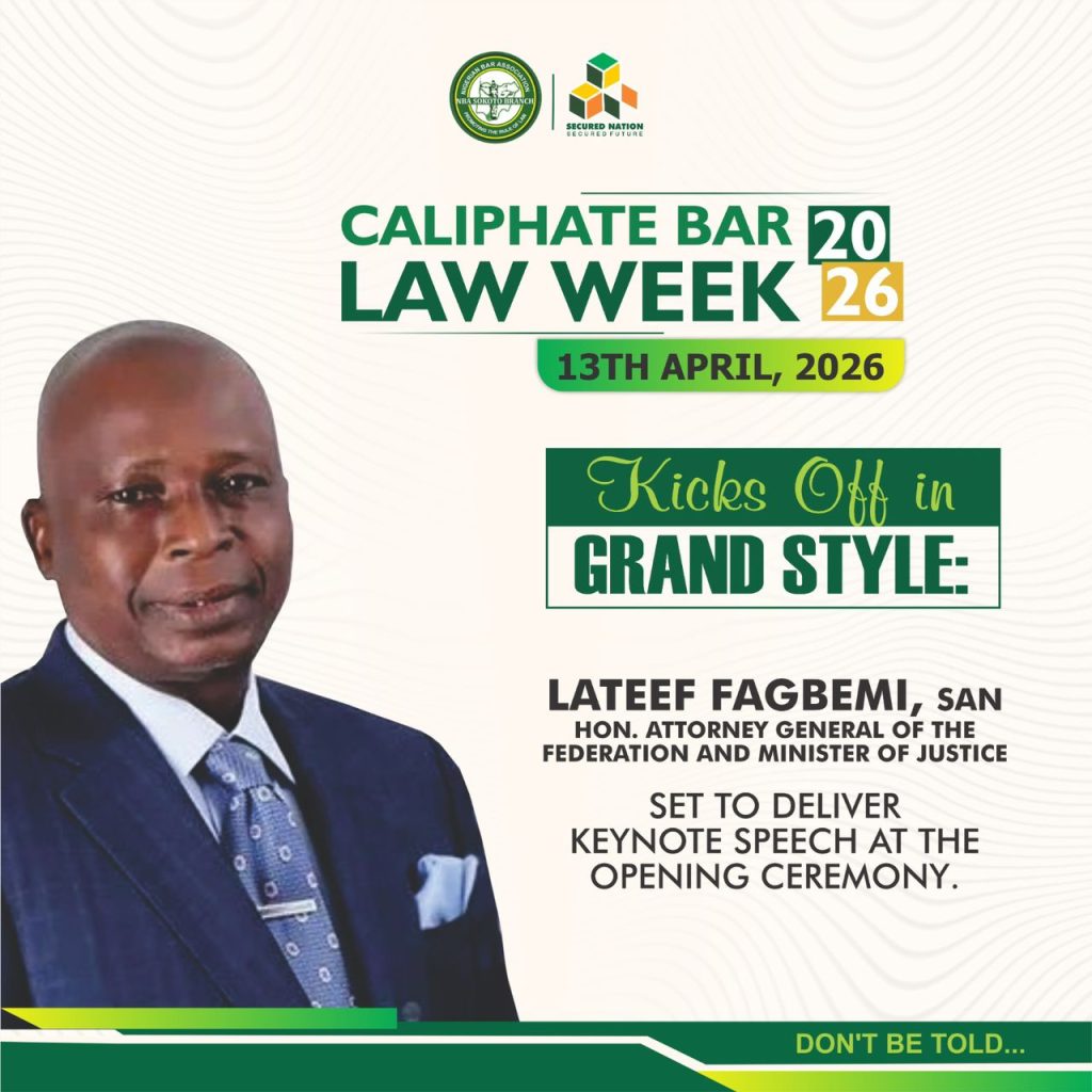 The Nigerian Bar Association (NBA), Sokoto Branch, will commence its Caliphate Bar Law Week 2026 on April 9, 2026, with activities running through the week.
