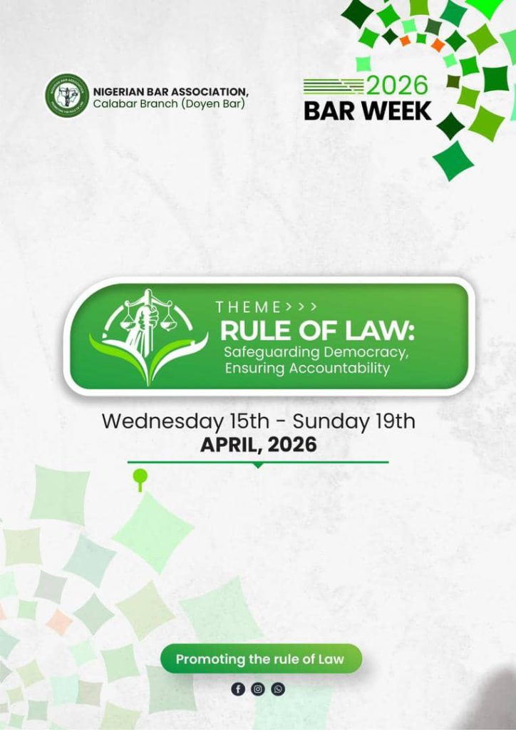 The Nigerian Bar Association (NBA), Calabar Branc, known as the “Doyen Bar” is set to host its highly anticipated 2026 Bar Week from April 15th to 19th.
